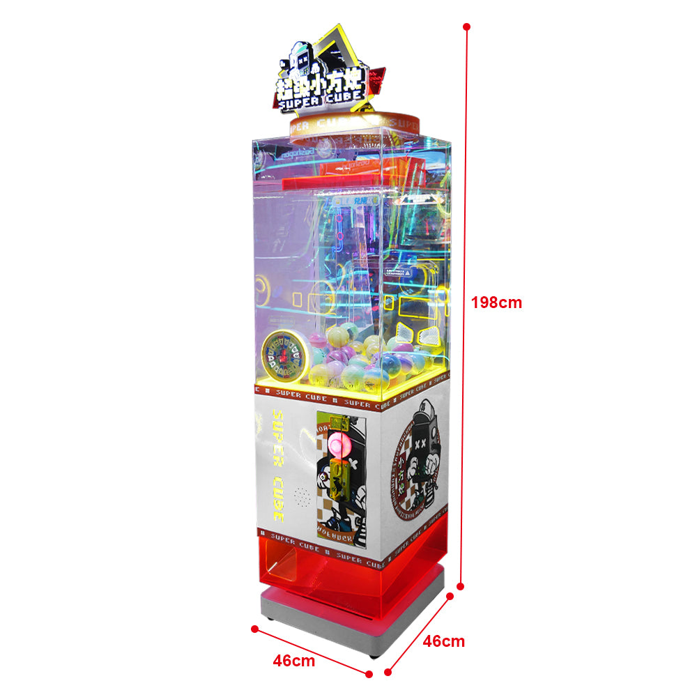The Super Mini Cube Arcade Machine is designed for operators who want maximum impact with minimal space usage. Its compact 46 × 46 cm footprint allows flexible placement in almost any venue, while the 198 cm vertical height ensures it remains highly visible.